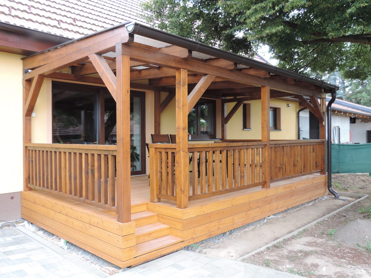Naše realizace nejčastěji zahrnují dřevěné pergoly, garážová stání, zahradní sklady nebo domky, zastřešení teras, dřevěné terasy a ostatní dřevěné konstrukce. Dále rekonstrukce a realizace střech včetně krovových konstrukcí a klempířských prací. Součástí našich realizací mohou být také veškeré zednické a výkopové práce jako napříkad betonáž základových patek, výstavba opěrných zdí, pohledových nosných pilířů atd…
